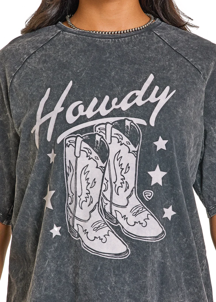 Look stylish in this Acid Wash Howdy Tee. Made from 100% cotton, this tee features a boot graphic on an tee.