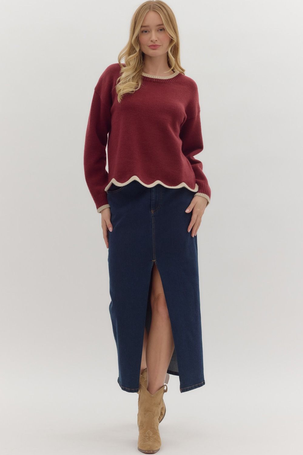 Burgundy Scalloped Sweater