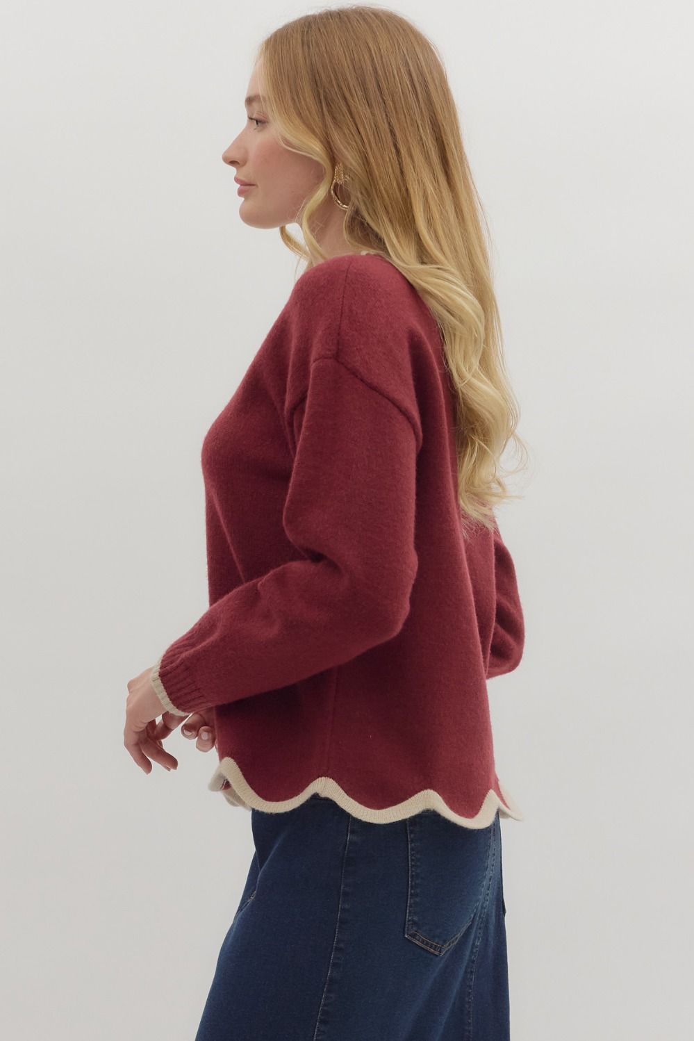 Burgundy Scalloped Pullover