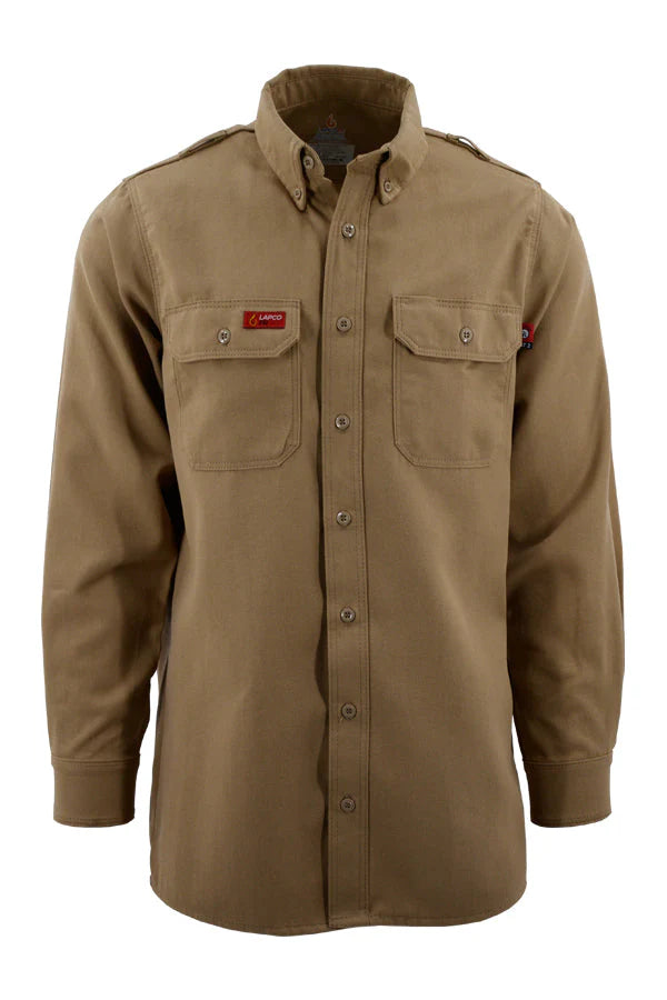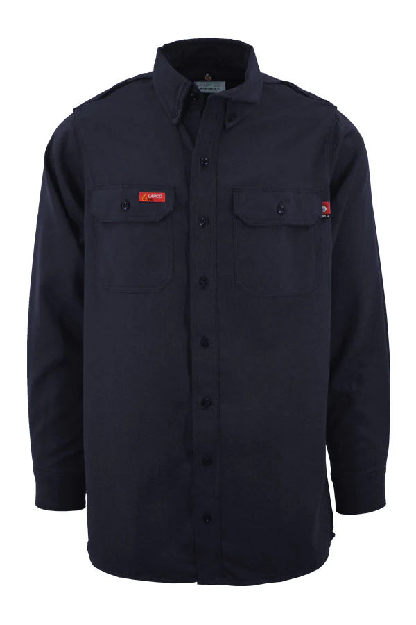 - Double-needle stitching on pockets, flaps, and shoulder seams. Sewn with Nomex® thread. Color-matched FR buttons.