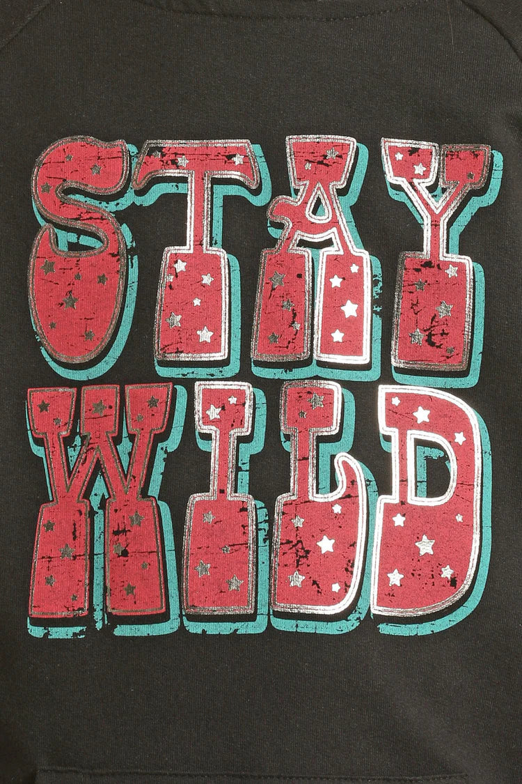 Inspire her adventurous spirit with our Girls' Stay Wild Graphic Hoodie in black. Made from a blend of 60% cotton and 40% polyester, this hoodie features a bold "Stay Wild" graphic, combining comfort with a message of freedom and exploration. Ideal for casual wear and layering.