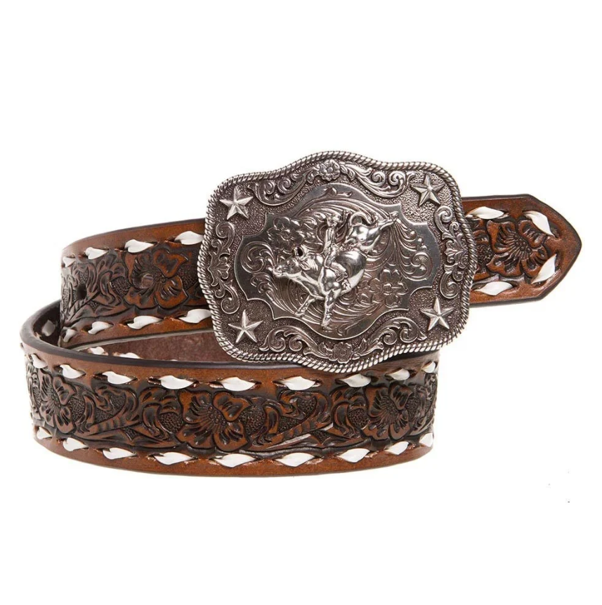 Nocona Boys Floral Embossed Bull Rider Buckle Lacing Belt - N4436208