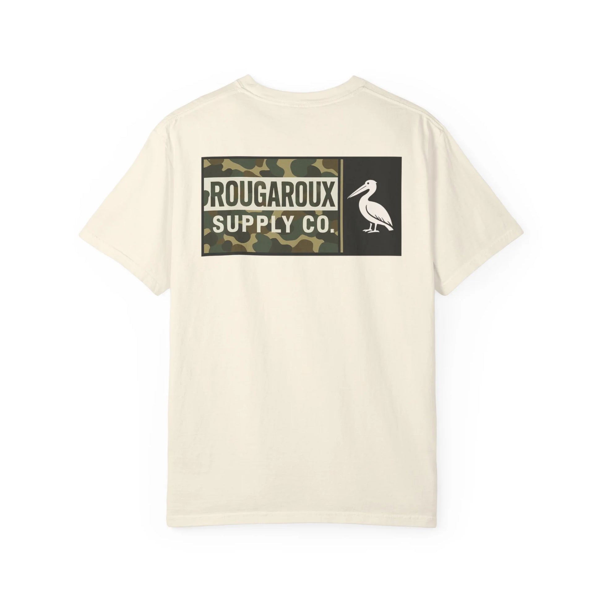 A rugged, box-style logo featuring our name in old school camo with a clean, minimalist pelican graphic — made to rep the bayou with grit and pride.