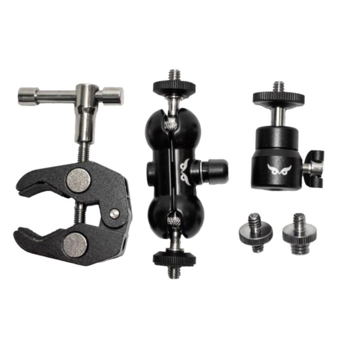 - Dual Arm Application: Need both a camera and a solar panel? No problem! With its Dual Arm design, the WiseEye Clamp Mount Kit can be accommodates to hold both components at once. Enjoy the convenience of carrying one mount to the woods without the need for additional mounting hardware.